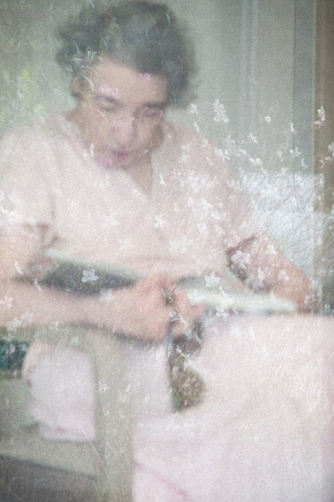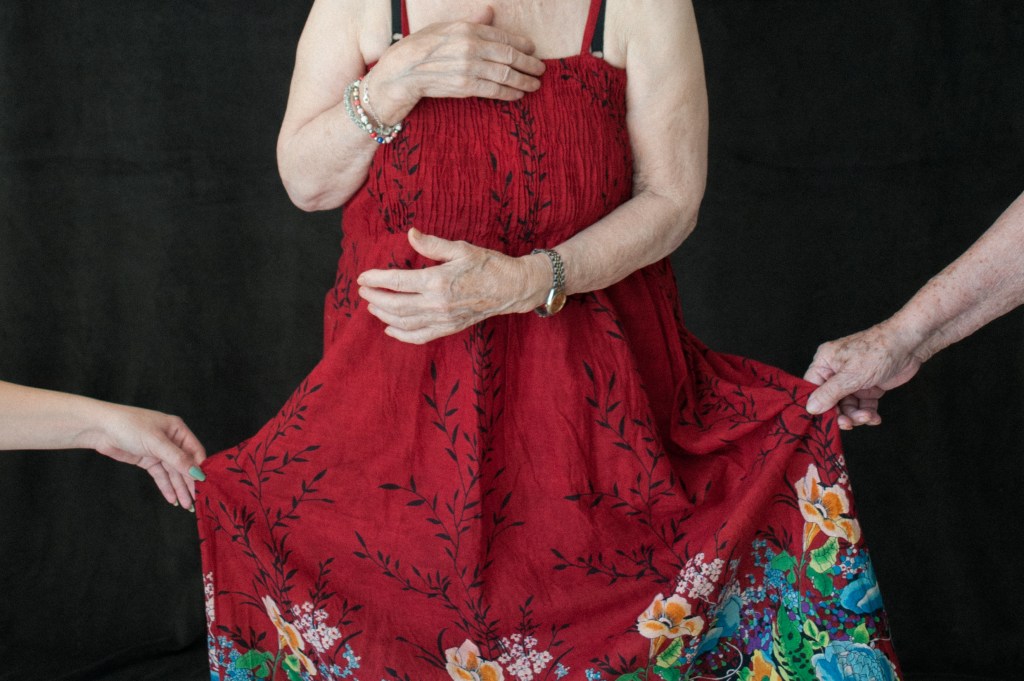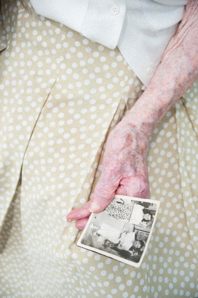 Qu’est-ce que c’est la mémoire ? Photographier ses traces à travers le jeu du déguisement a été le but de ma résidence dans une maison de retraite. Avec une valise pleine de robes et d’accessoires, j’ai organisé des shootings de mode. Avec les participants qui ont joué le jeu d’assistants, nous avons décidé de photographier aussi beaucoup de détails. Ouvrir un débat sur les vêtements et les couleurs qu’on choisit de porter chaque jour, m’a permis de rentrer en contact d’une façon douce et amusante, avec la mémoire des gens âgés. Ce jeu m’a révélé que, pendant cette phase de la vie, malgré les troubles mnésiques qui peuvent survenir, l’être humain privilégie les souvenirs émotionnels aux souvenirs factuels. Geneviève est devenue ma muse. Elle est fille unique et la plupart de ses amis habitent loin de Marseille. Suite à un accident, elle a pris la décision de rentrer en maison de retraite.